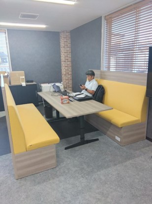 営業デスクは全席フリーアドレスになり、おしゃれなカフェのような雰囲気になりました。