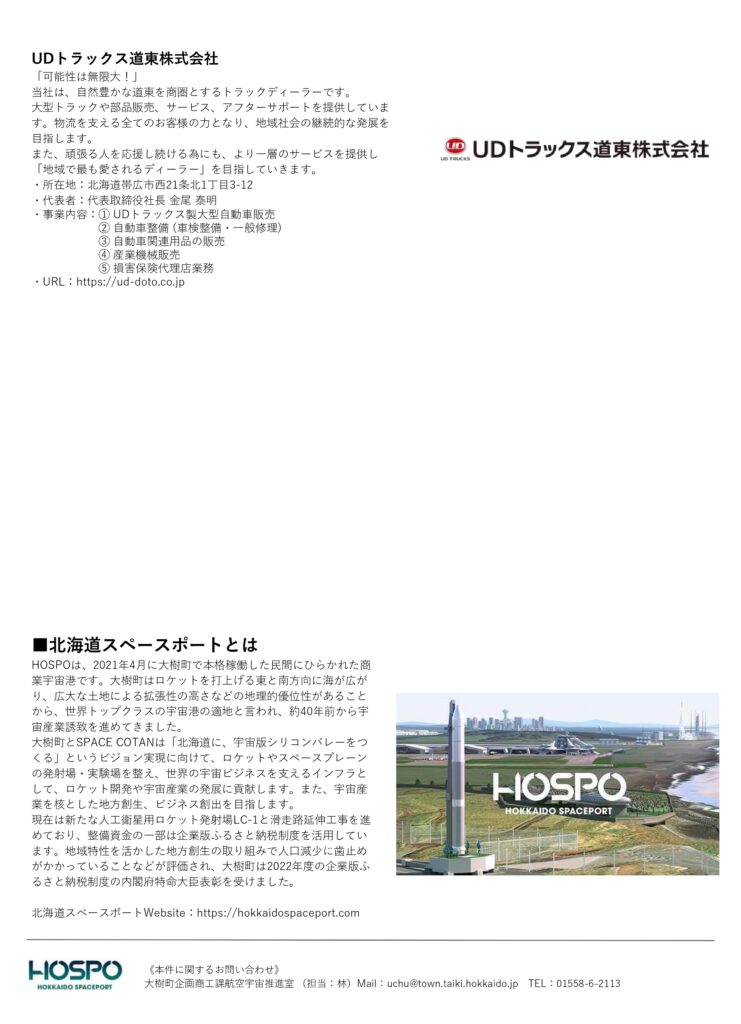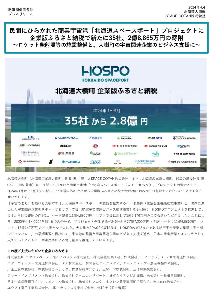 旭商工社は、アジア初の商業宇宙港「北海道スペースポート」に企業版ふるさと納税を通して支援しています。