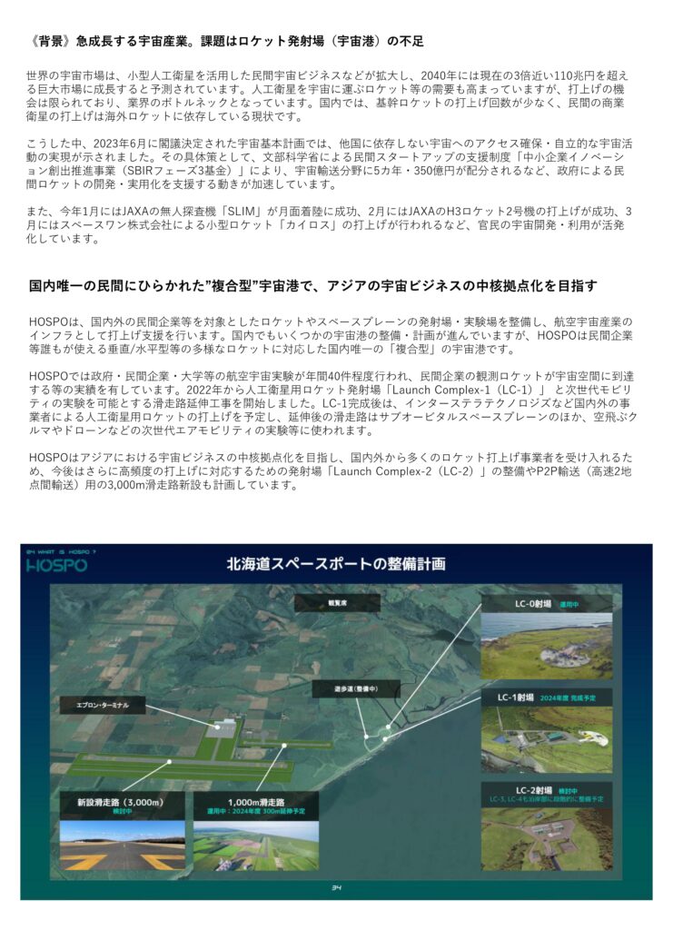 商業宇宙港「北海道スペースポート」を支援